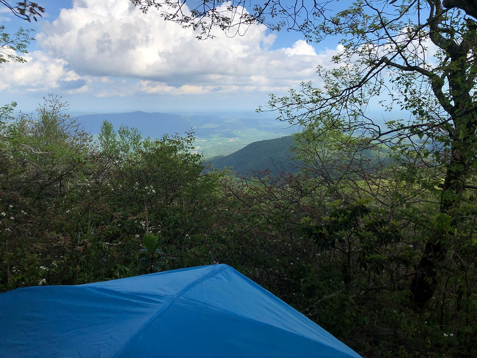 The campsite at Tray Mountain was the payoff for our efforts. A mountain view is hard to beat, and this one was great. The shelter itself was less than desirable, but a moot point. The campsite was about 50 yards before the shelter. We were lucky to arrive first. Around 12 campers in total ended up at this campsite.